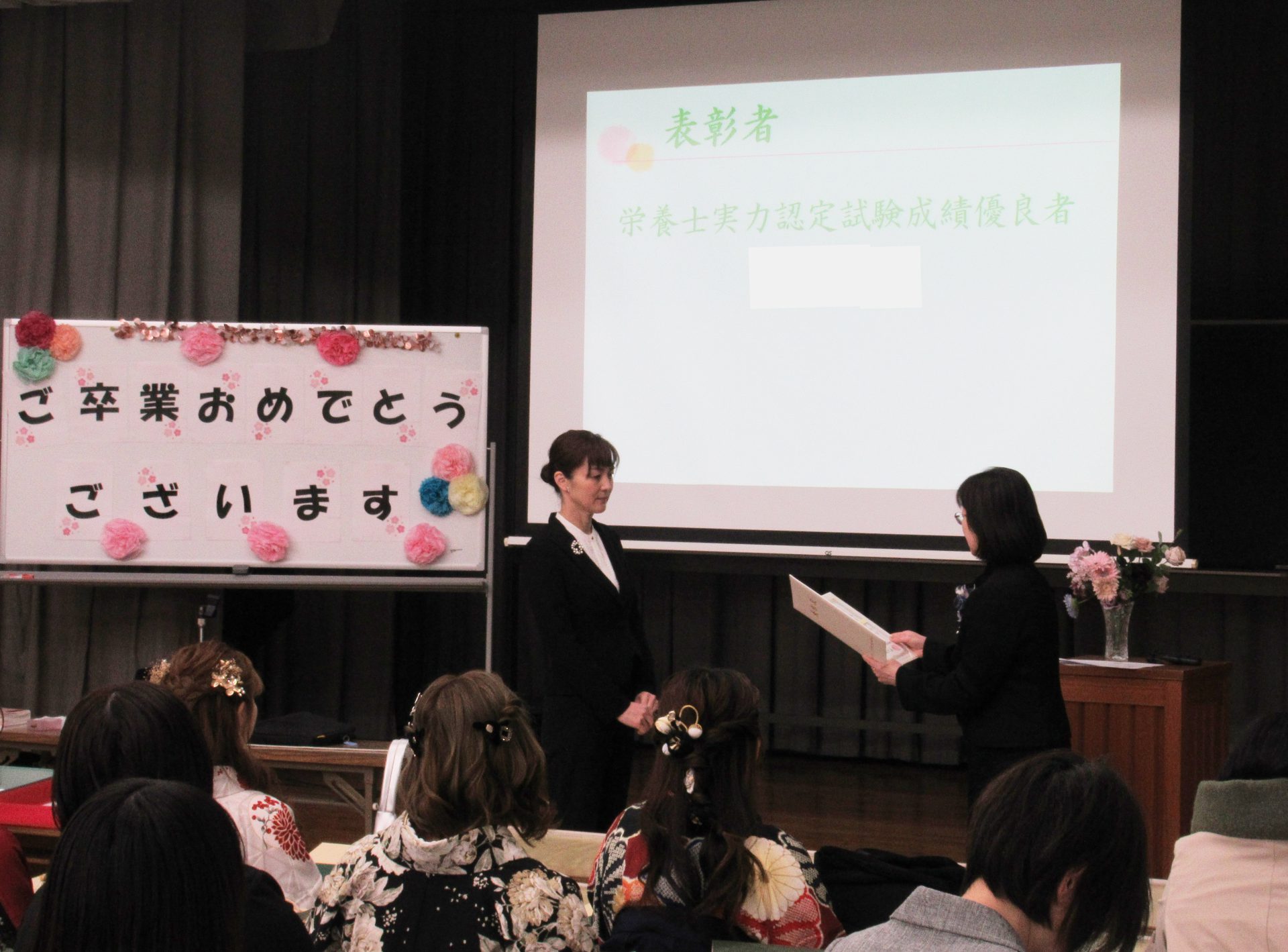 2024年度卒業証書・学位記授与式及び修了式にて、栄養士実力認定試験の成績優良者の表彰が行われました。