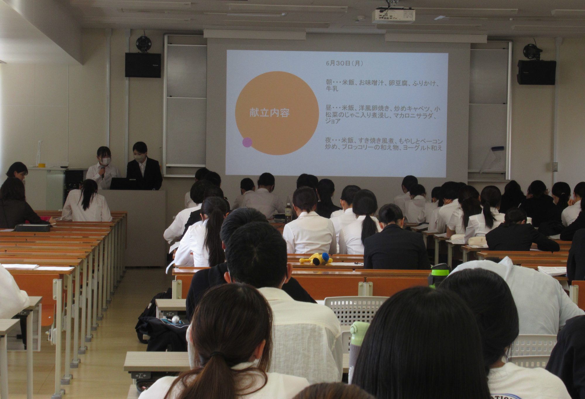 健康栄養学科2年の学生が、7月上旬に実施した給食校外実習の報告会を行いました。