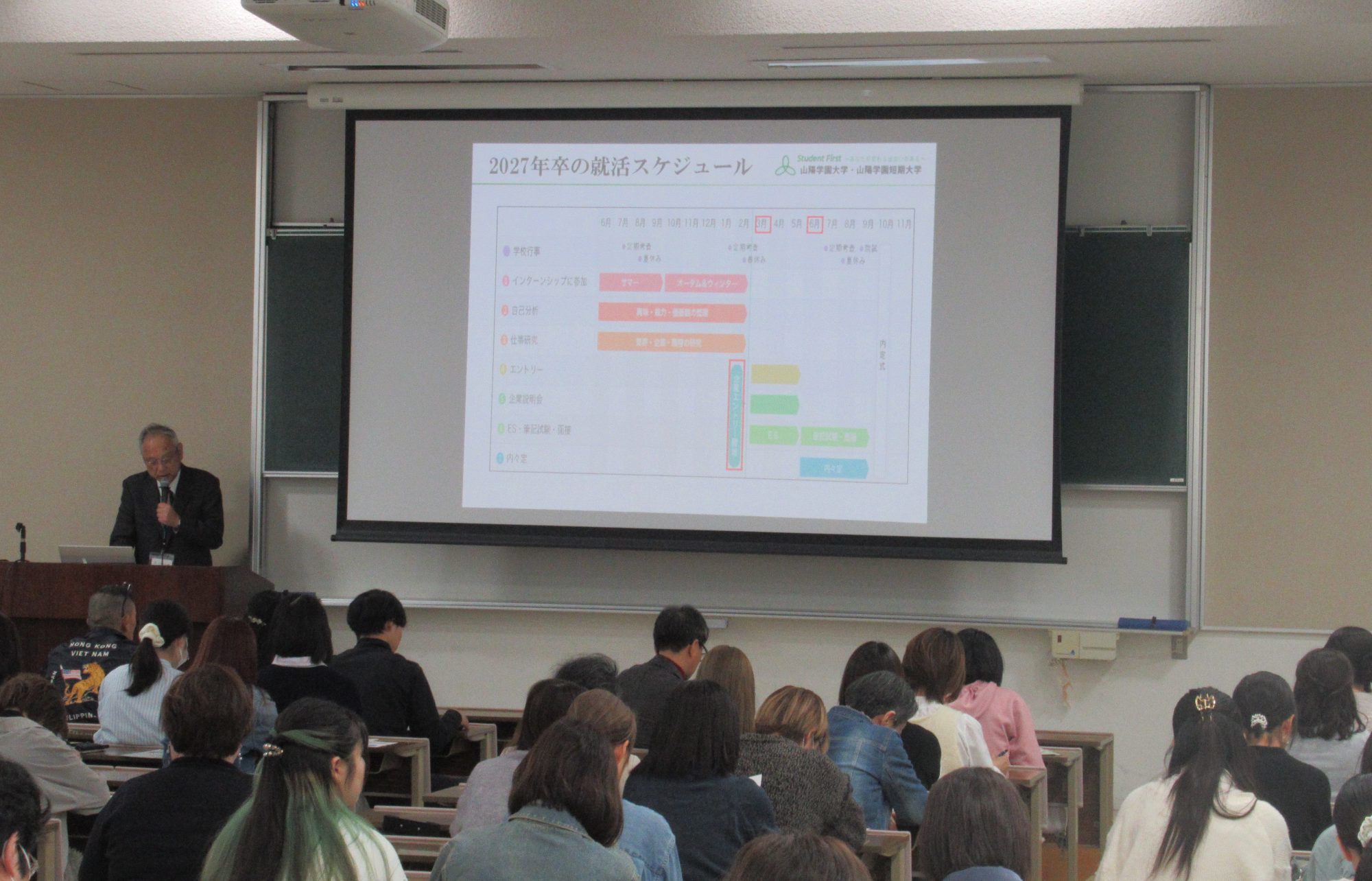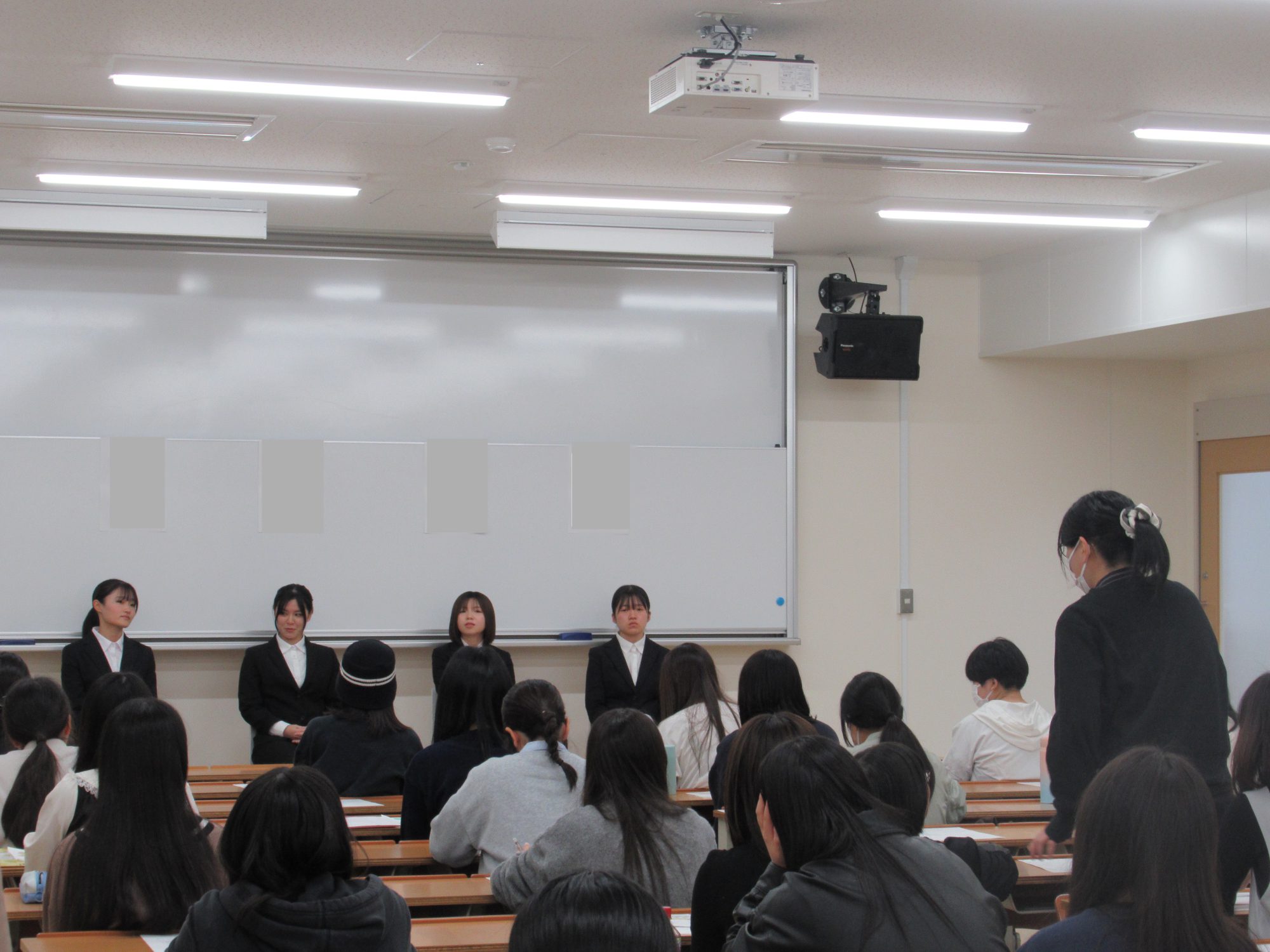 11月1日(土)に在学生と保護者を対象に就職懇談会が開催されました。 「就職支援活動の取組み」や「卒業生の就職状況」についてのお話を聞いた後、今期の就活を終え、内定を得た学生3名と、保育園で栄養士として活躍している卒業生1名による体験報告がありました。出席した在学生からは「いつごろから就職活動に取り組んだか」、「どこから情報収集を行ったか」等の質問が寄せられ、内定者や卒業生から体験談に基づく貴重なアドバイスを聞くことができました。和やかな雰囲気で有意義な情報交換会が行われました。