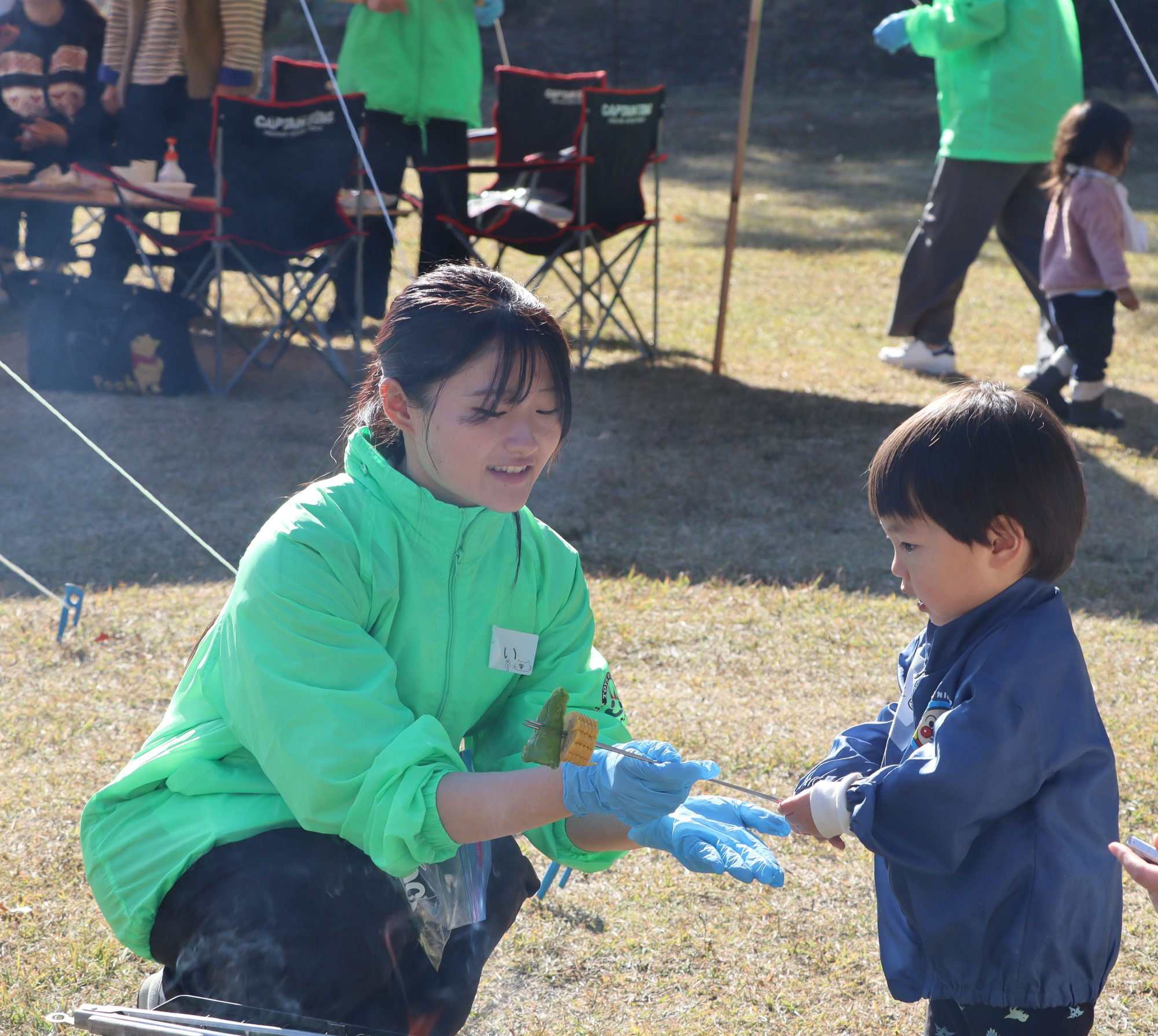 2年後期 『教職実践演習』のおもちゃ王国での活動の様子を紹介します。 「おもちゃ王国」で、食育と災害食調理(耐熱袋に材料を入れ、茹でるだけの簡単パッククッキング)を実施しました。子どもたちの反応を見ながら、食育(紙しばい・シルエットクイズ・ペープサート)を実践することで学生の学びが深まりました。参加者と一緒に、パッククッキング「チーズコーンクリームペンネ作り」を行い、とても好評でした。