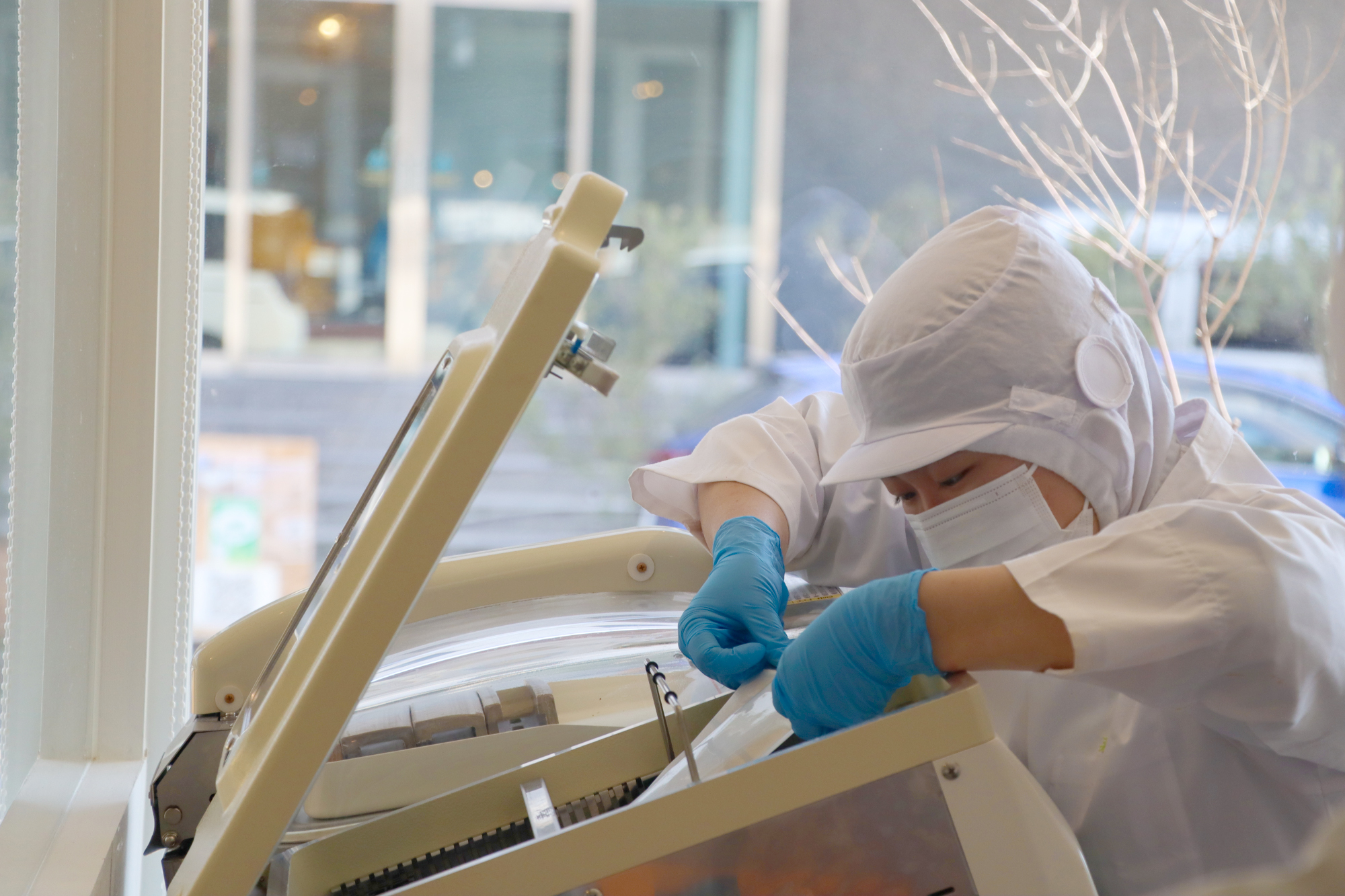3月10日に、給食cafeひるやすみの商品開発プロジェクトのメンバー(3年コースの2年7人)が、食品加工・飲食店を運営する「MARSLAB」協力のもと、200食分のカレーを調理しました。その後、レトルト包装への封入、専用の機械での密閉・殺菌をし、レトルトパウチを作成しました。