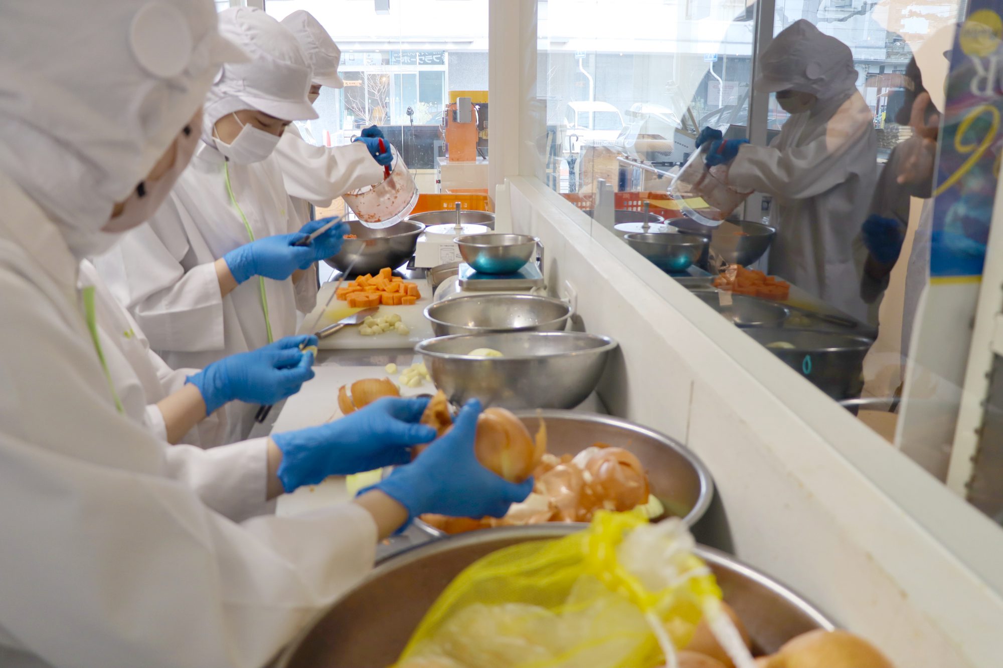 来年度の「フードビジネスコース」開設に先駆けて、商品開発プロジェクト「給食café ひるやすみ」が始動しています。現在、昨年の大学祭にて販売した大豆ミートのカレーをパワーアップし、レトルト商品化を目指して活動しています。