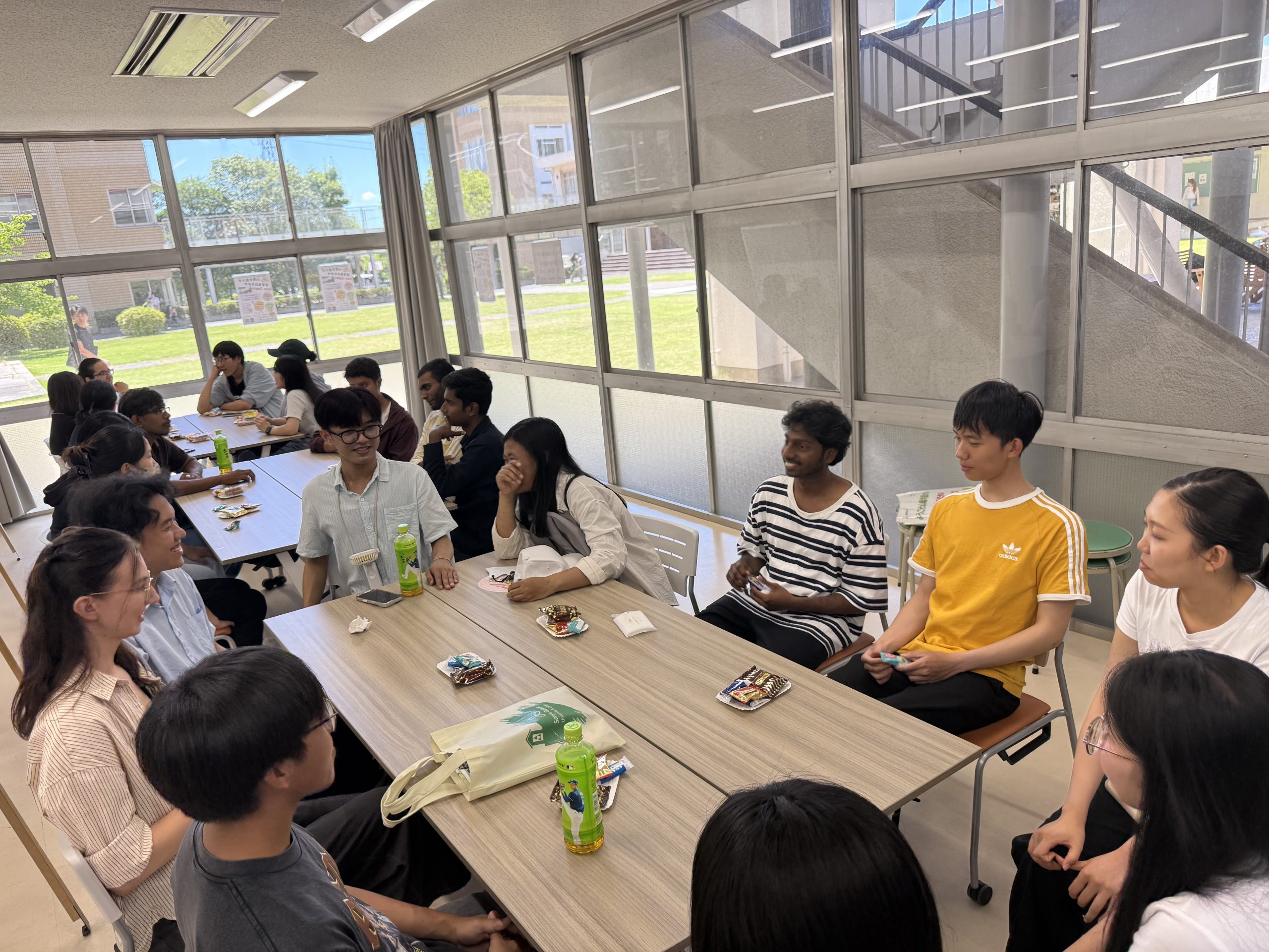 食後は、教室に戻って本学の留学生、日本人学生と交流会!楽しくおしゃべりをしました。