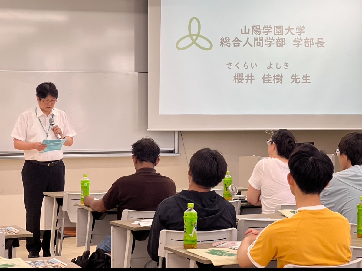 櫻井総合人間学部長から日本語と英語で歓迎の挨拶がありました。