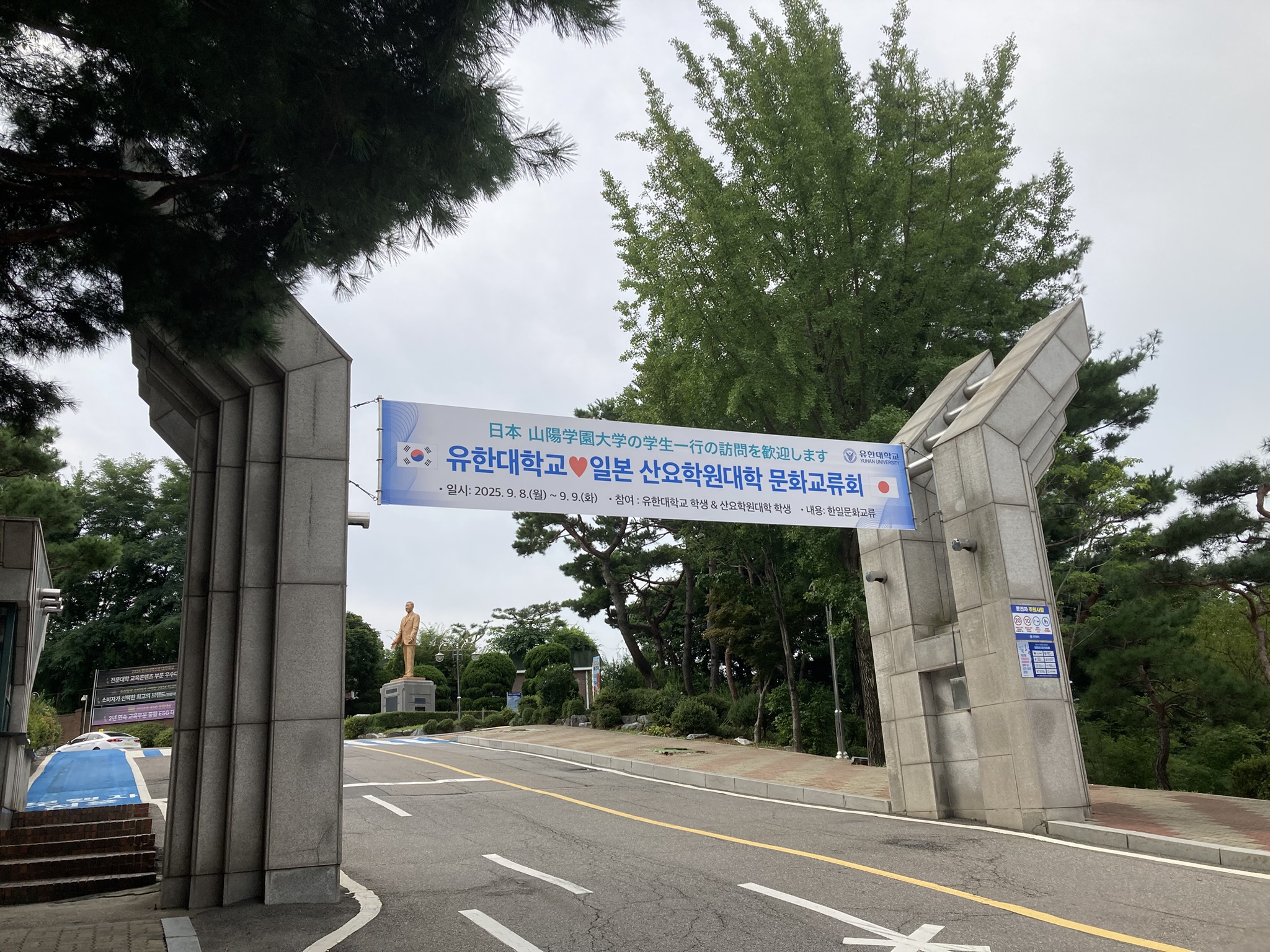 2025年9月2日から~10日までの9日間、韓国の太田広域市にある又松(ウソン)大学と富川市にある柳韓(ユハン)大学で異文化理解実習Aを実施しました。今回実習に参加したのは、言語文化学科1年生12名です。実習では、本学の協定校である又松大学と柳韓大学で日本語を学ぶ韓国人学生と交流会を日本文化の紹介をしました。また、全州の史跡を巡り、教科書では学べない韓国の歴史を目で見て学ぶことができました。