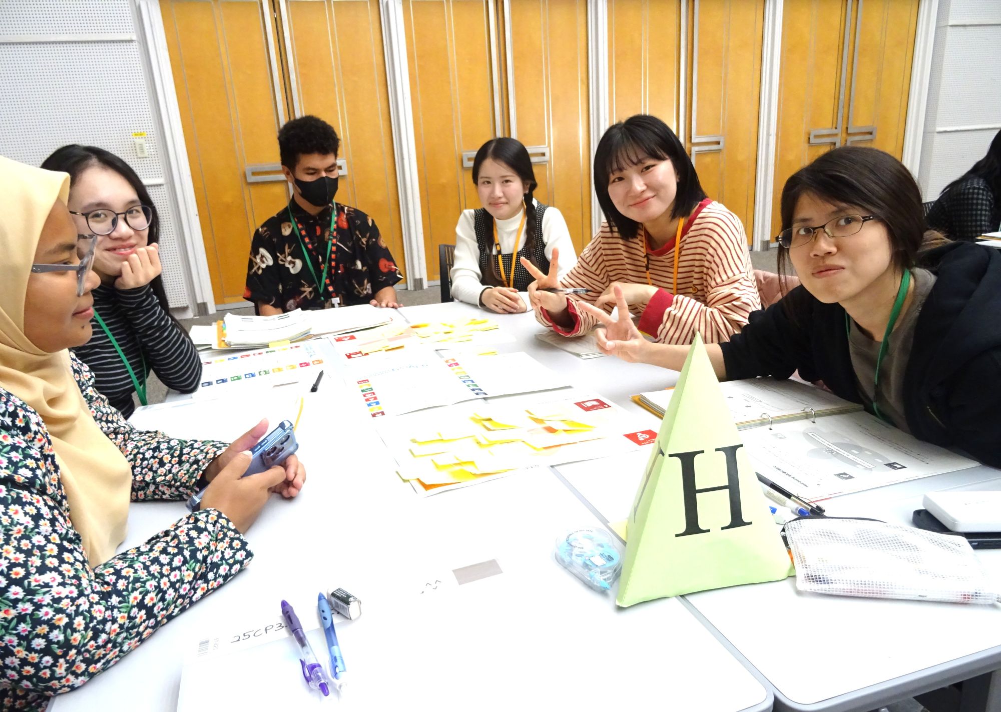 「ダイバーシティ」をテーマとしたグループワークで、様々な国の研修参加者と活動をする高津佐さん(右から2人目)