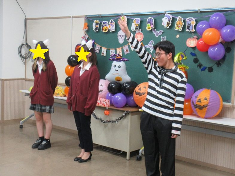 10月31日の当日は、ゲームやアニメ、おばけなどの仮装をした1年生から6年生までの小学生約30人が集まり、さまざまなハロウィンゲームを楽しみました。私は囚人のコスプレをして、子どもたちが安心して楽しめるよう、ゲームの補助や声かけを担当しました。