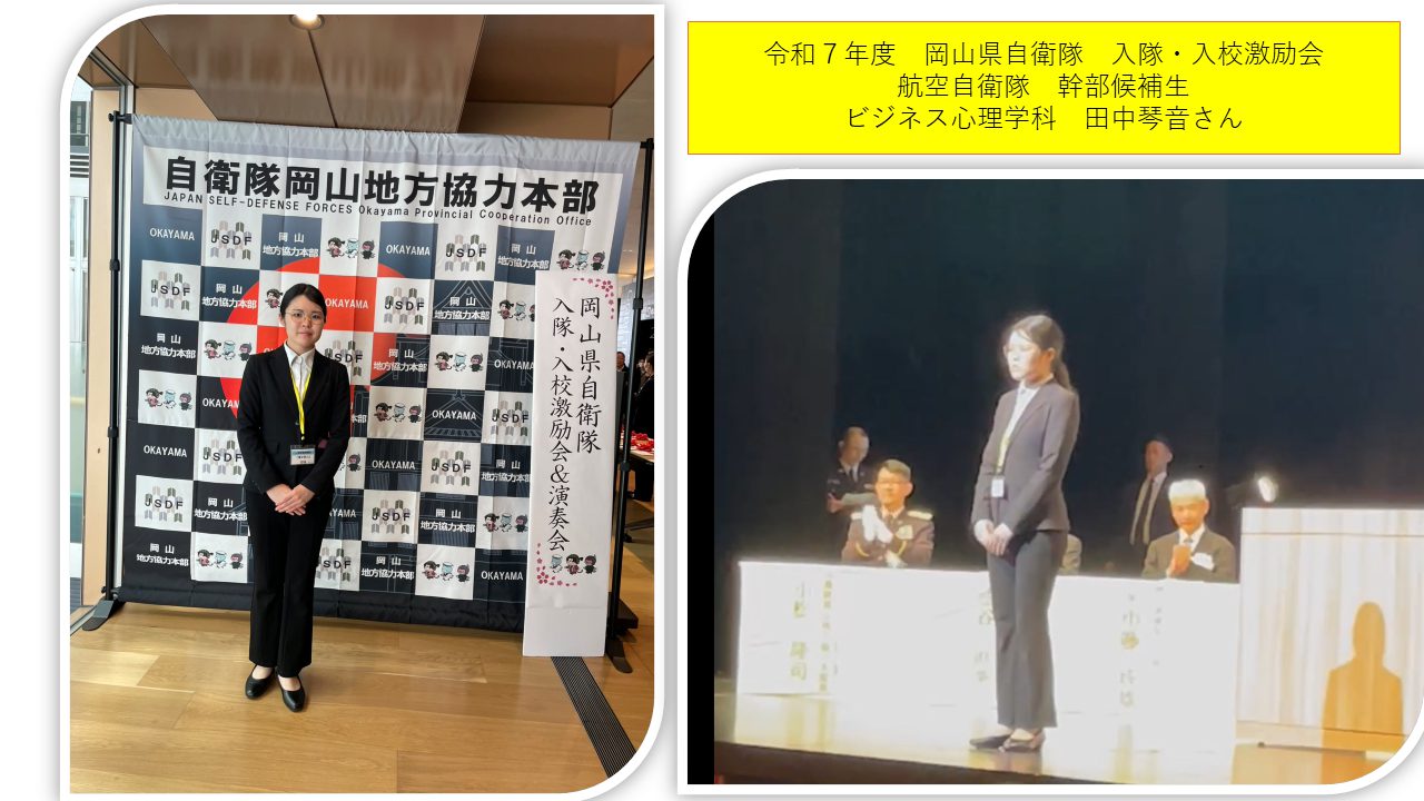 ビジネス心理学科の学生が「岡山県自衛隊入隊・入校激励会」に参加しました ビジネス心理学科(2025)