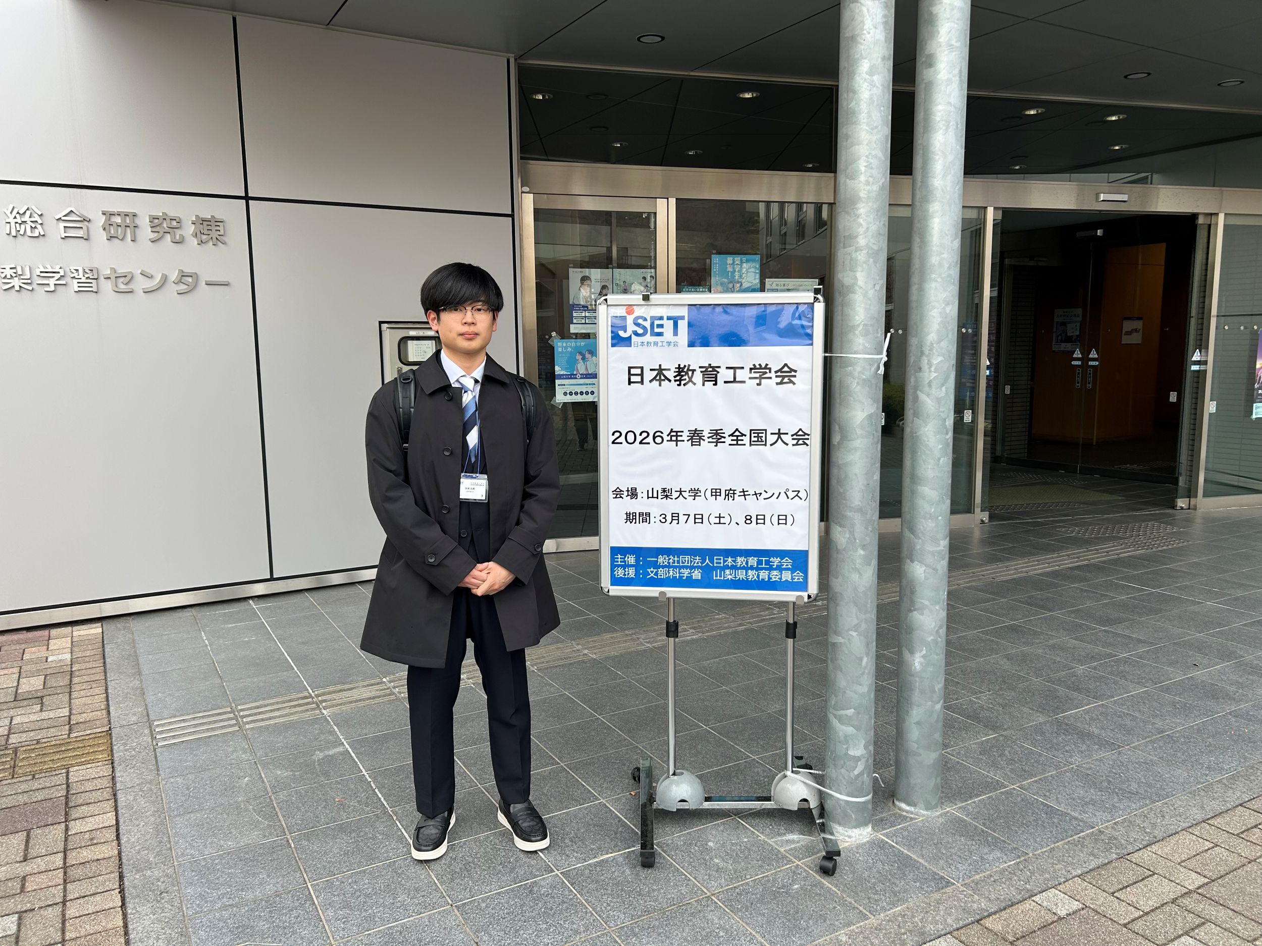 ビジネス心理学科3年生の安東志真さんが、2026年3月7日に山梨大学甲府キャンパスで開催された日本教育工学会年次大会において、学術発表を行いました。