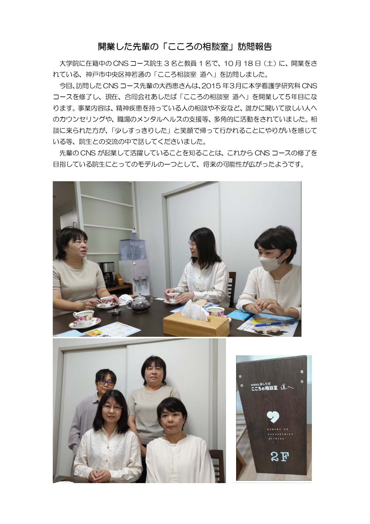 開業した先輩の「こころの相談室」訪問報告 看護学研究科(2025)