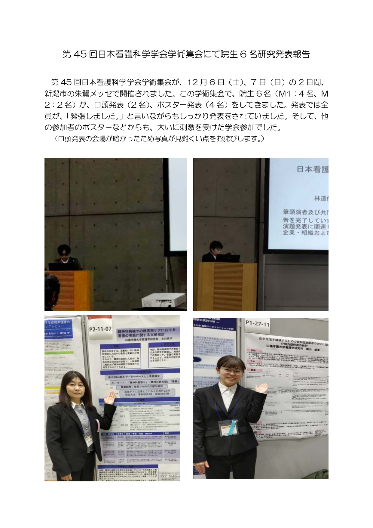 第45回日本看護科学学会学術集会にて院生6名研究発表報告 看護学研究科(2025)