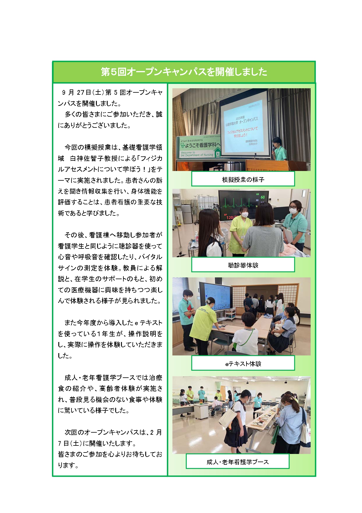 第5回オープンキャンパスを開催しました 看護学科(2025)