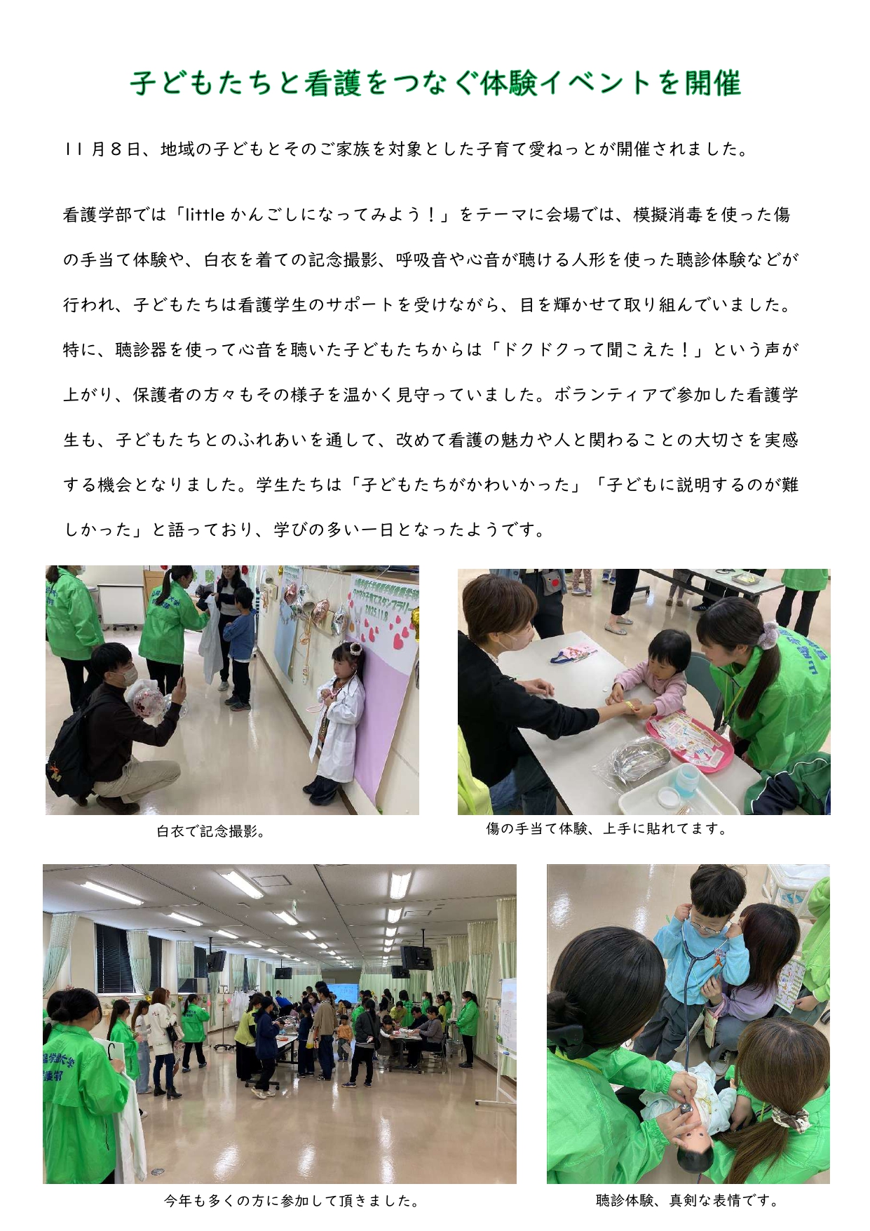 子どもたちと看護をつなぐ体験イベントを開催 看護学科(2025)