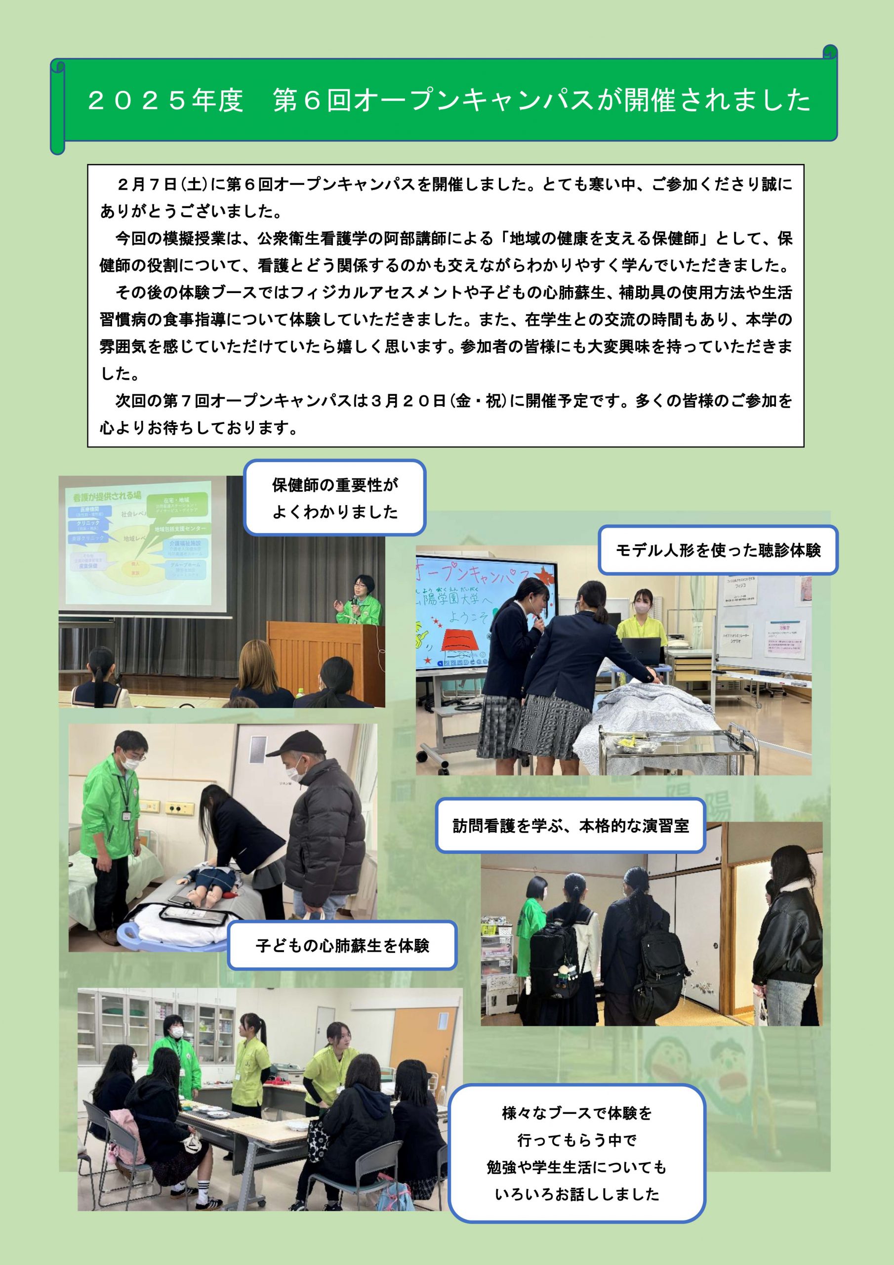 2025年度 第6回オープンキャンパスが開催されました 看護学科(2025)