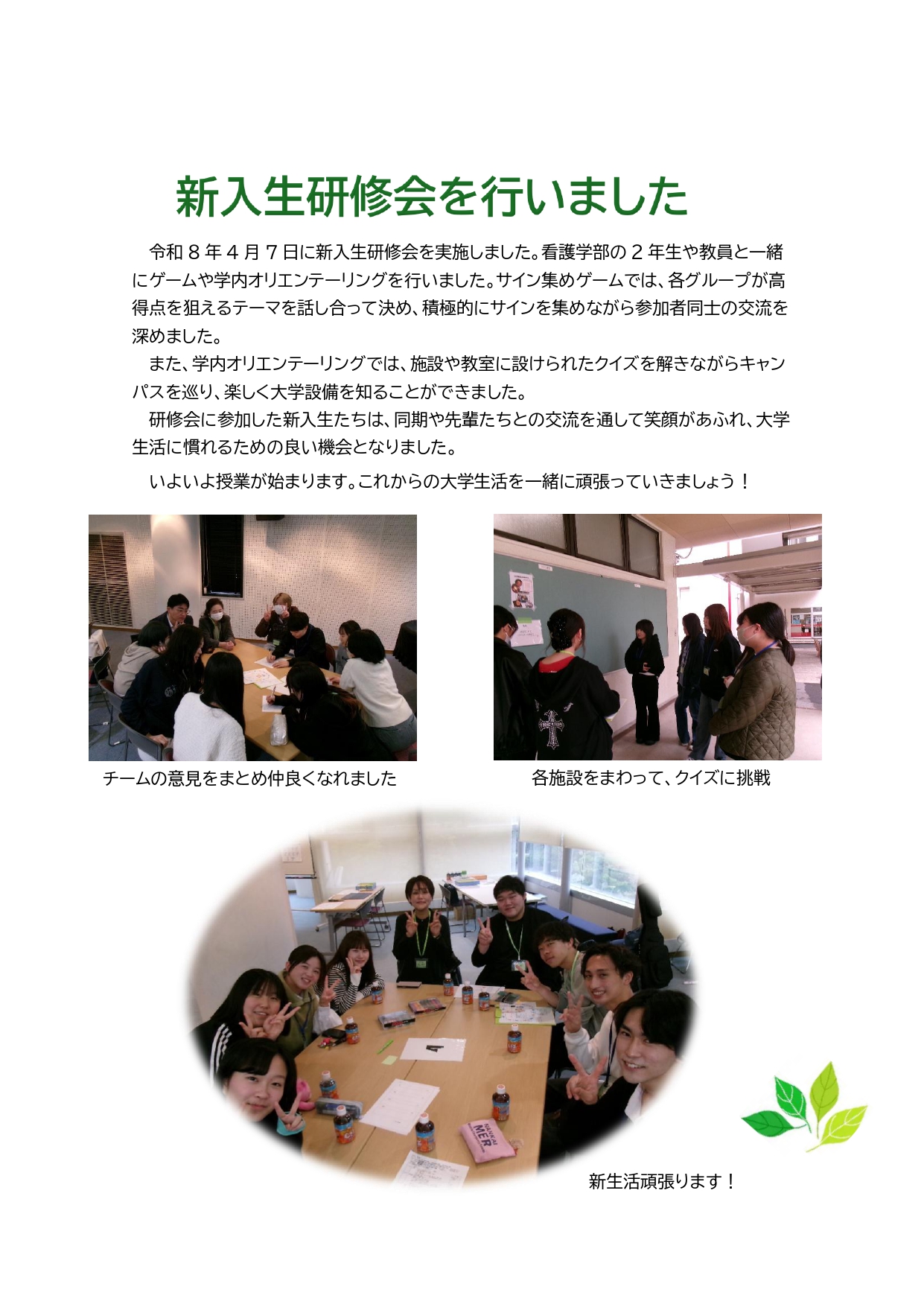新入生研修会を行いました 看護学科(2026)
