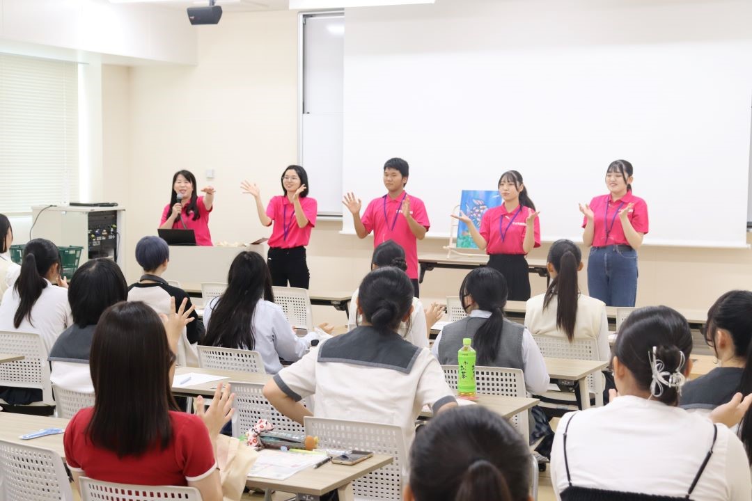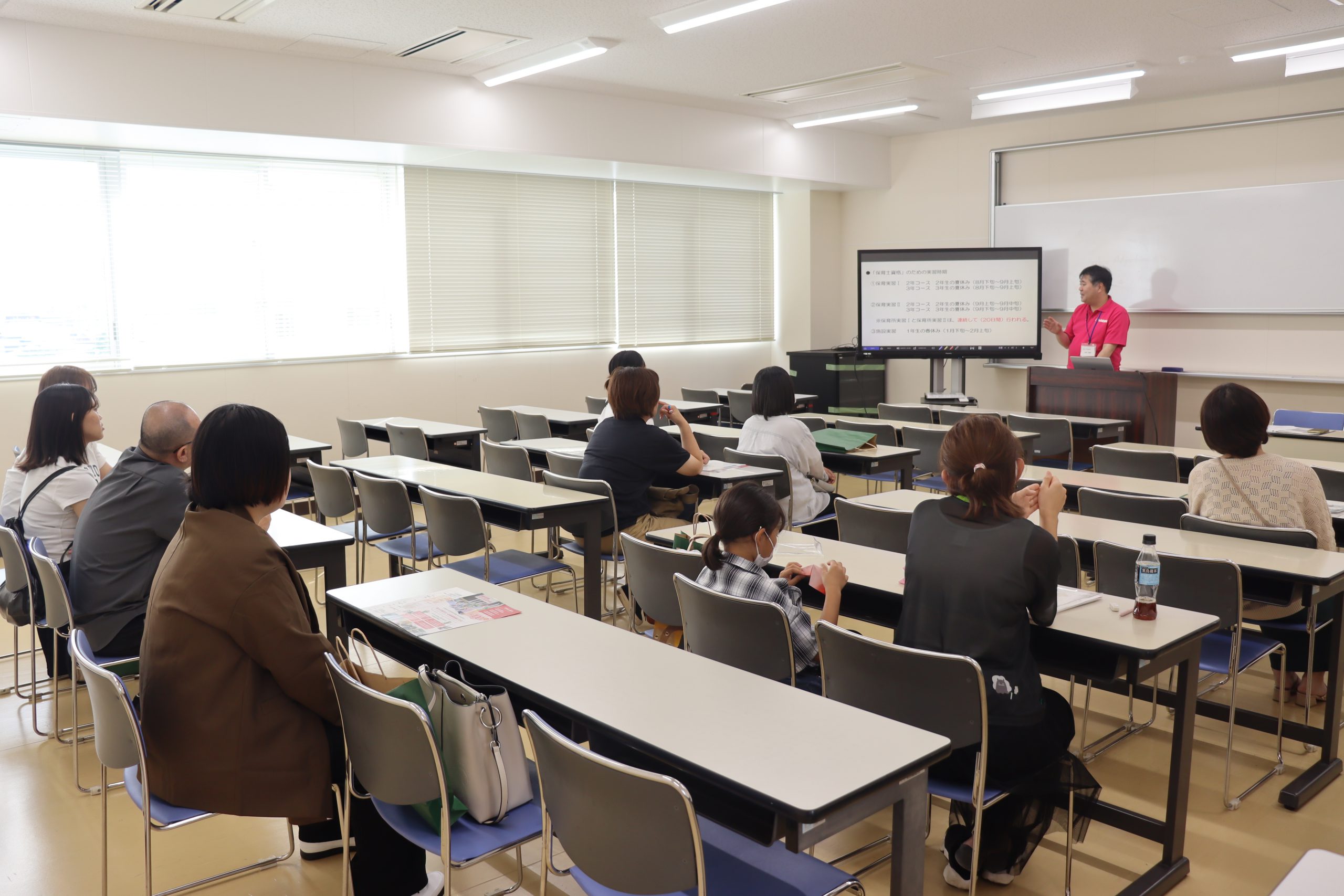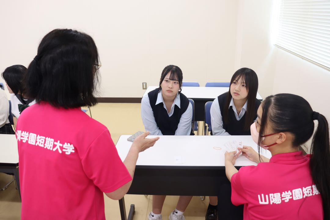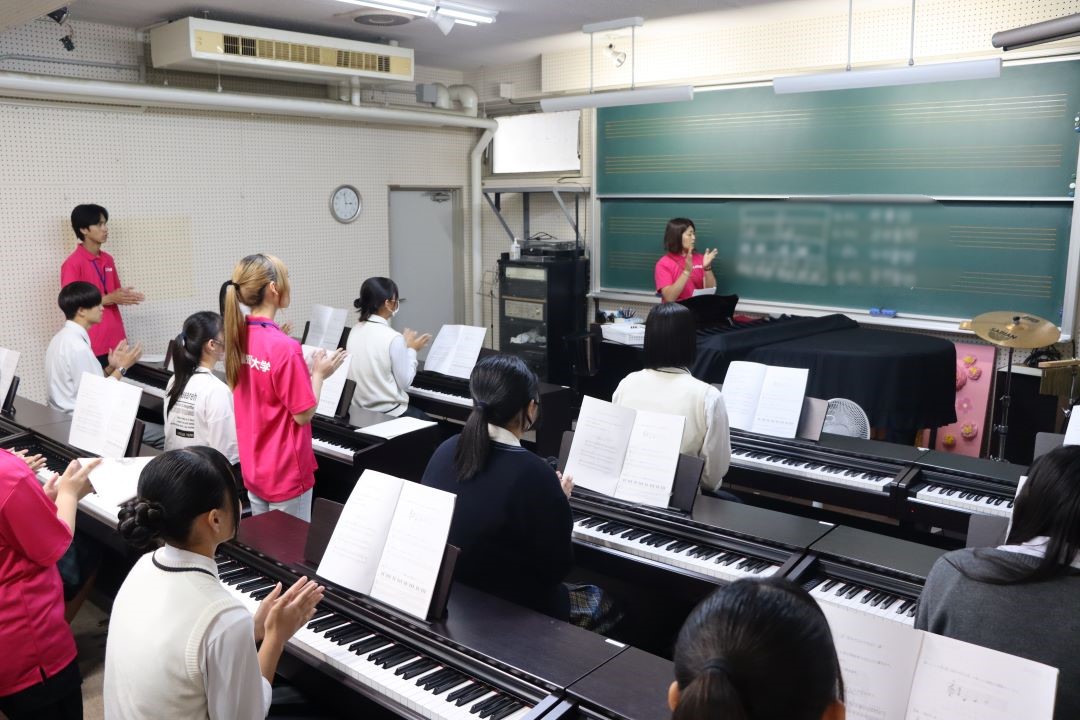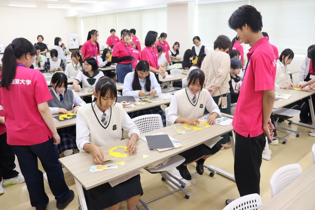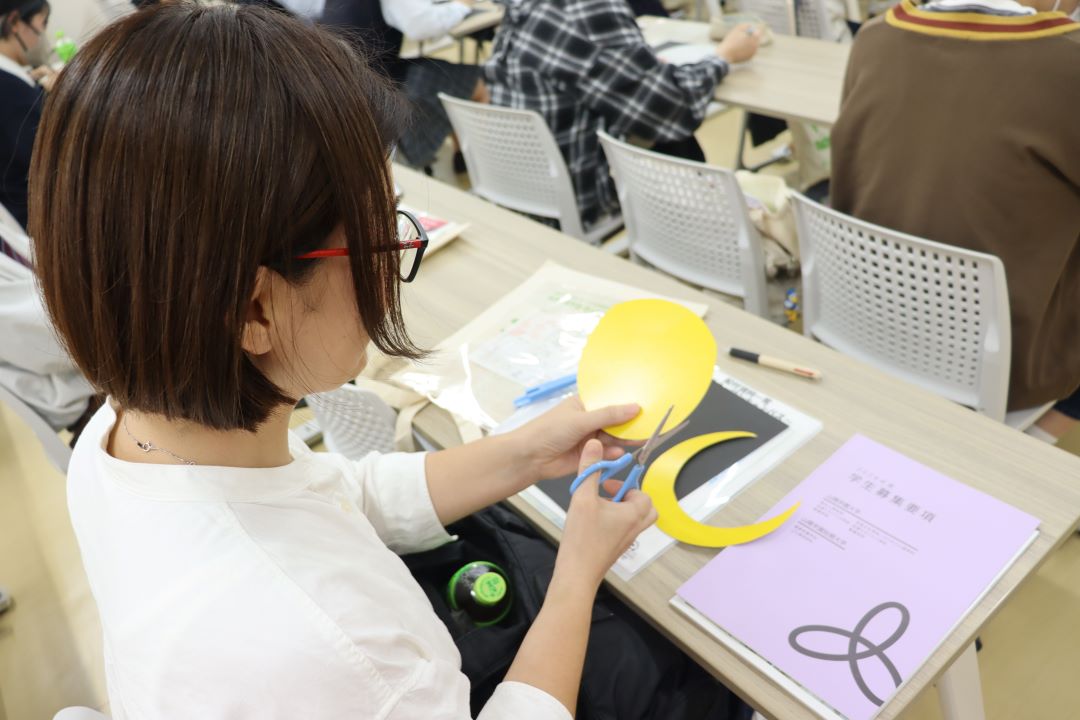 9月のオープンキャンパスは、「体験授業」、「保護者会」、選択制の「ピアノ体験」「在校生とのおしゃべり」「入試準備ガイダンス」など盛りだくさんのメニューで、参加された生徒さんや保護者の方に喜んでいただきました。「絵本からの遊びを広げよう」の体験授業では、中秋も近いことから『お月さまってどんなあじ?』の絵本からの遊びの広がりをしました。遊びは、「月のパズル作り」です。下書きをし凝った形を丁寧に切り分ける方や、フリーハンドで手早くききる方など様々。パズル遊びでは、黄色無地の月を組み合わせるのは意外に難しかったようです。また、保育現場での絵本の取り入れ方や効果などについてのお話や、本学の取組として絵本ノートや認定絵本士の紹介もしました。