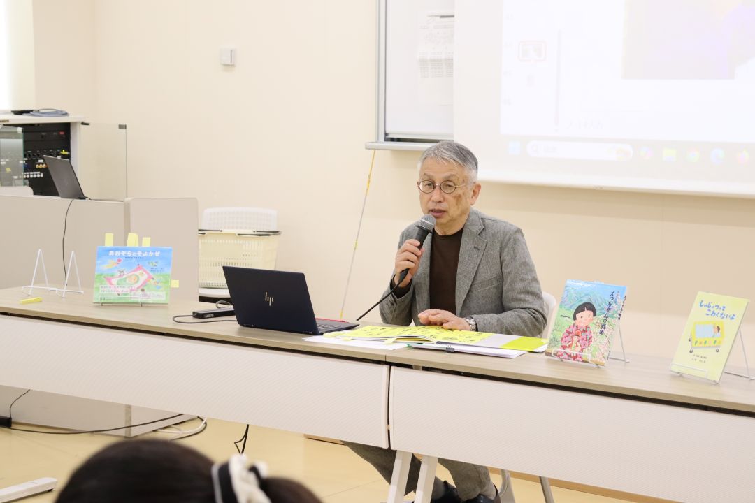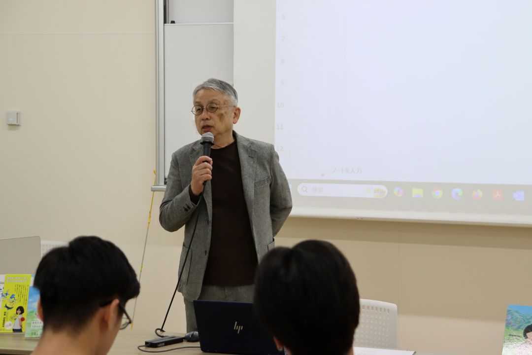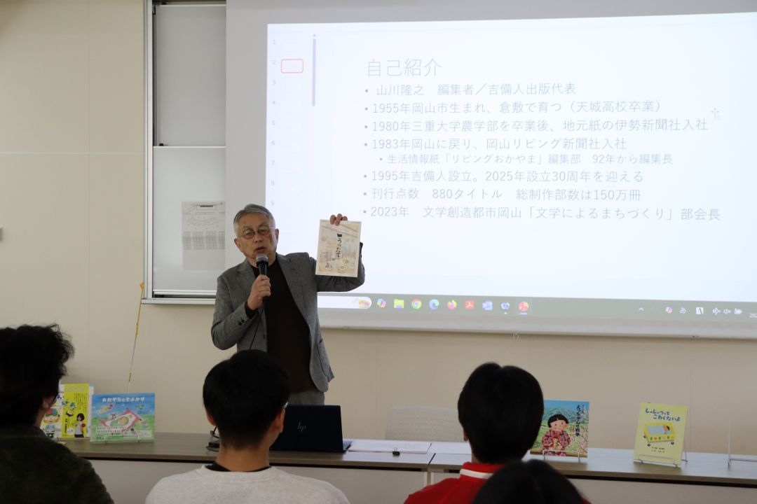 今年も吉備人出版の山川様がゲストスピーカーとして来られました。絵本の編集の工程や作家さんたちと相談したことなどについて話をしていただきました。