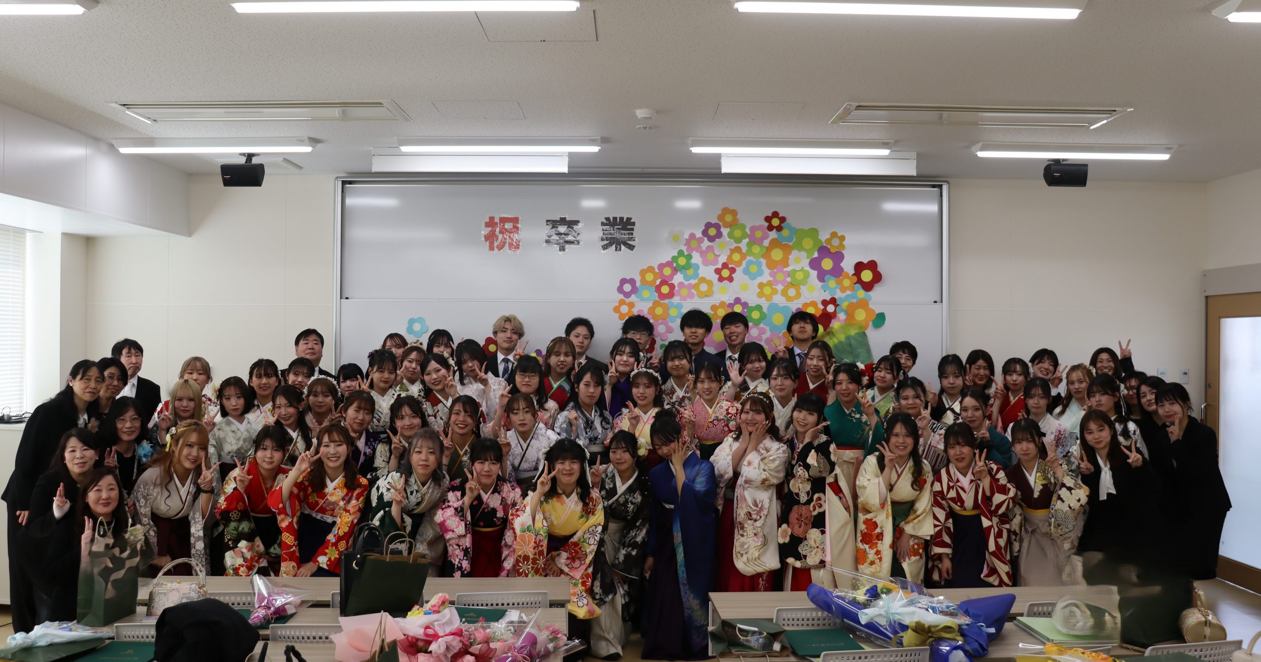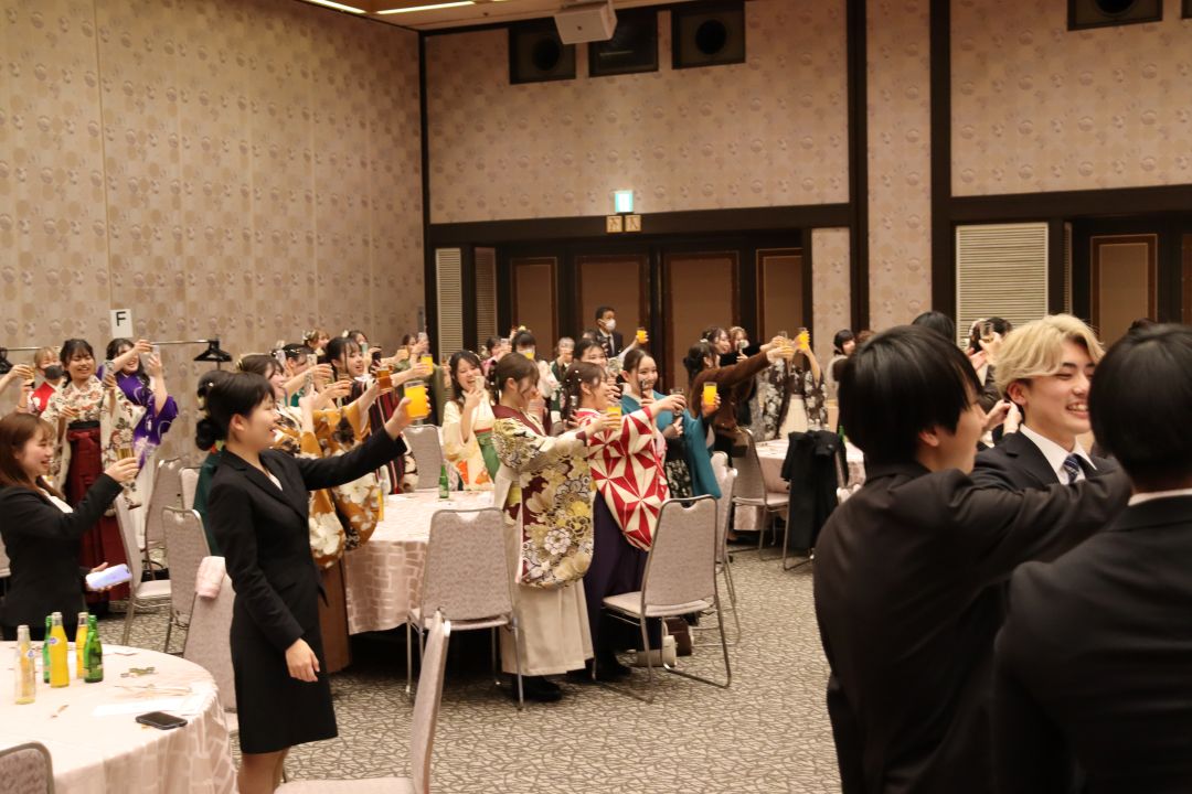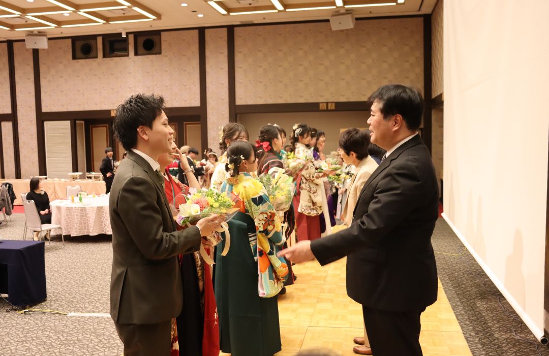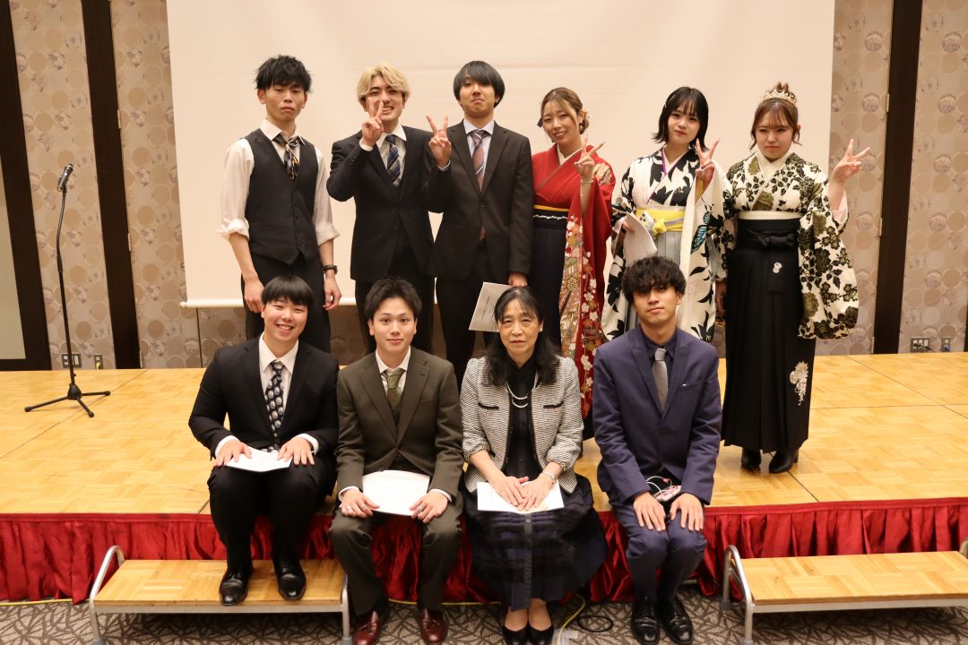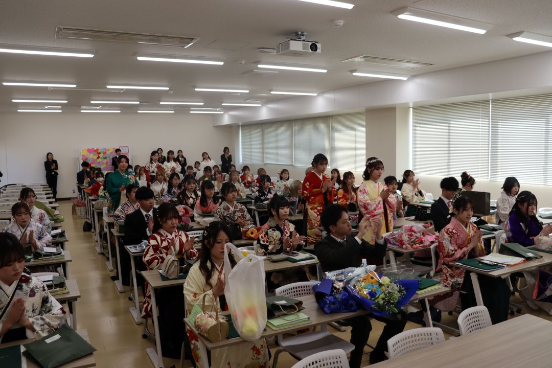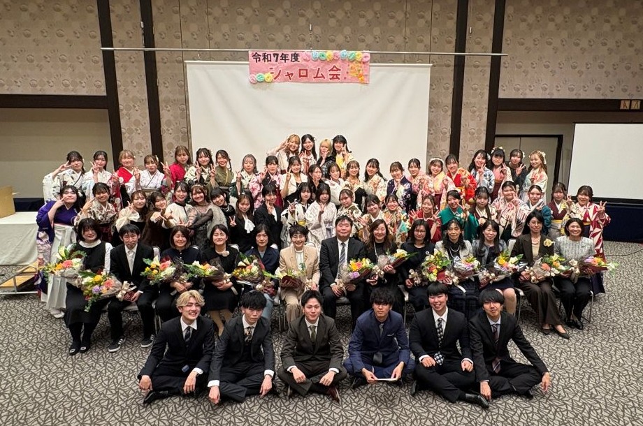 3月15日(日)晴天のもと、令和7年度卒業証書授与式が挙行されました。こども育成学科58名の学生も晴れやかに卒業の日を迎えることができました。学科の集いでは、学科長より代表者に卒業証書が授与され、全員で集合写真を撮りました。午後からは学生委員が企画運営したシャロム会(卒業パーティー)が開かれ、卒業生教職員共に、在学中の思い出に笑いと涙でいっぱいになりました。