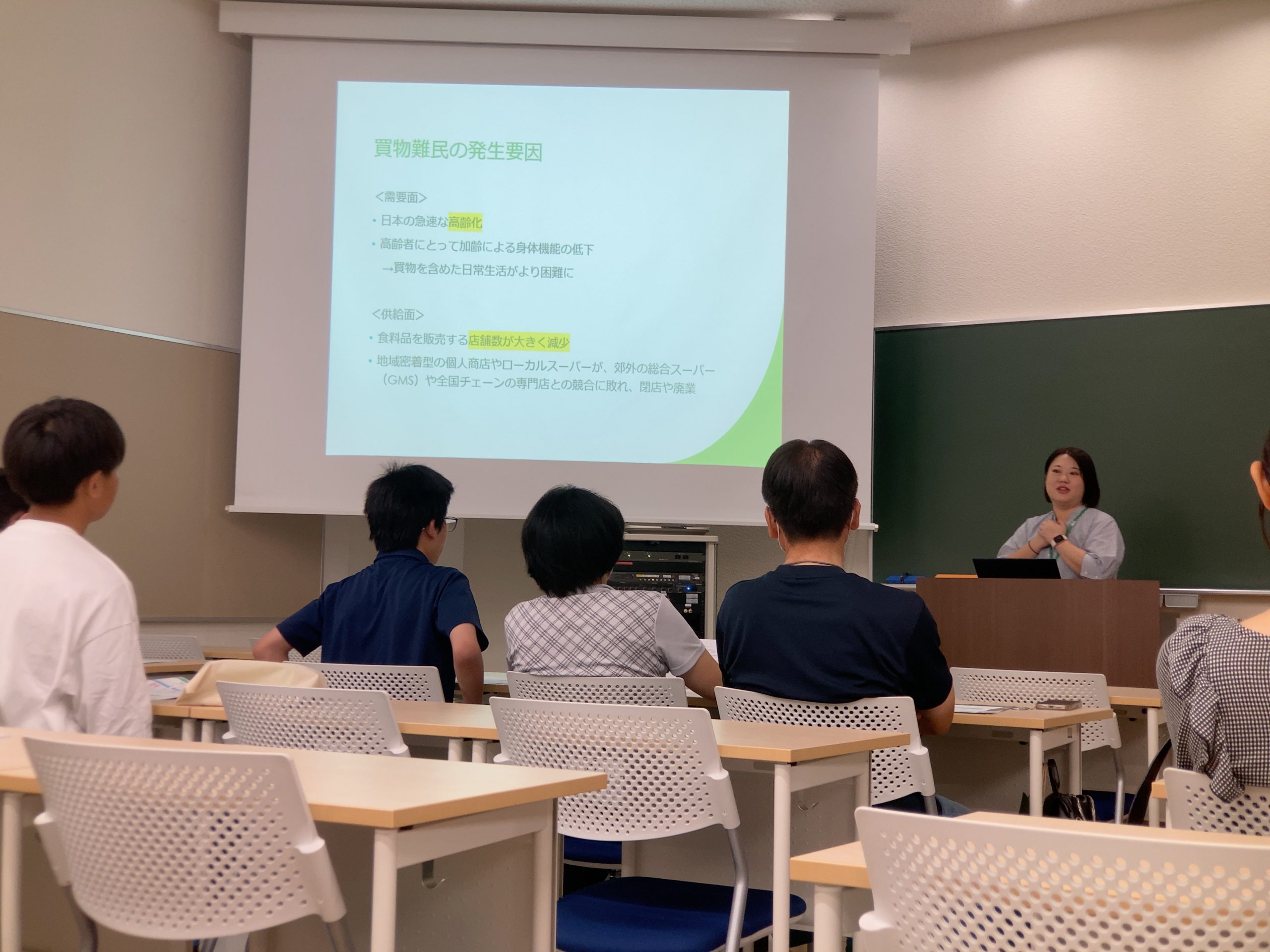 続いて行われた模擬講義では、大宮めぐみ講師が「買い物難民を地