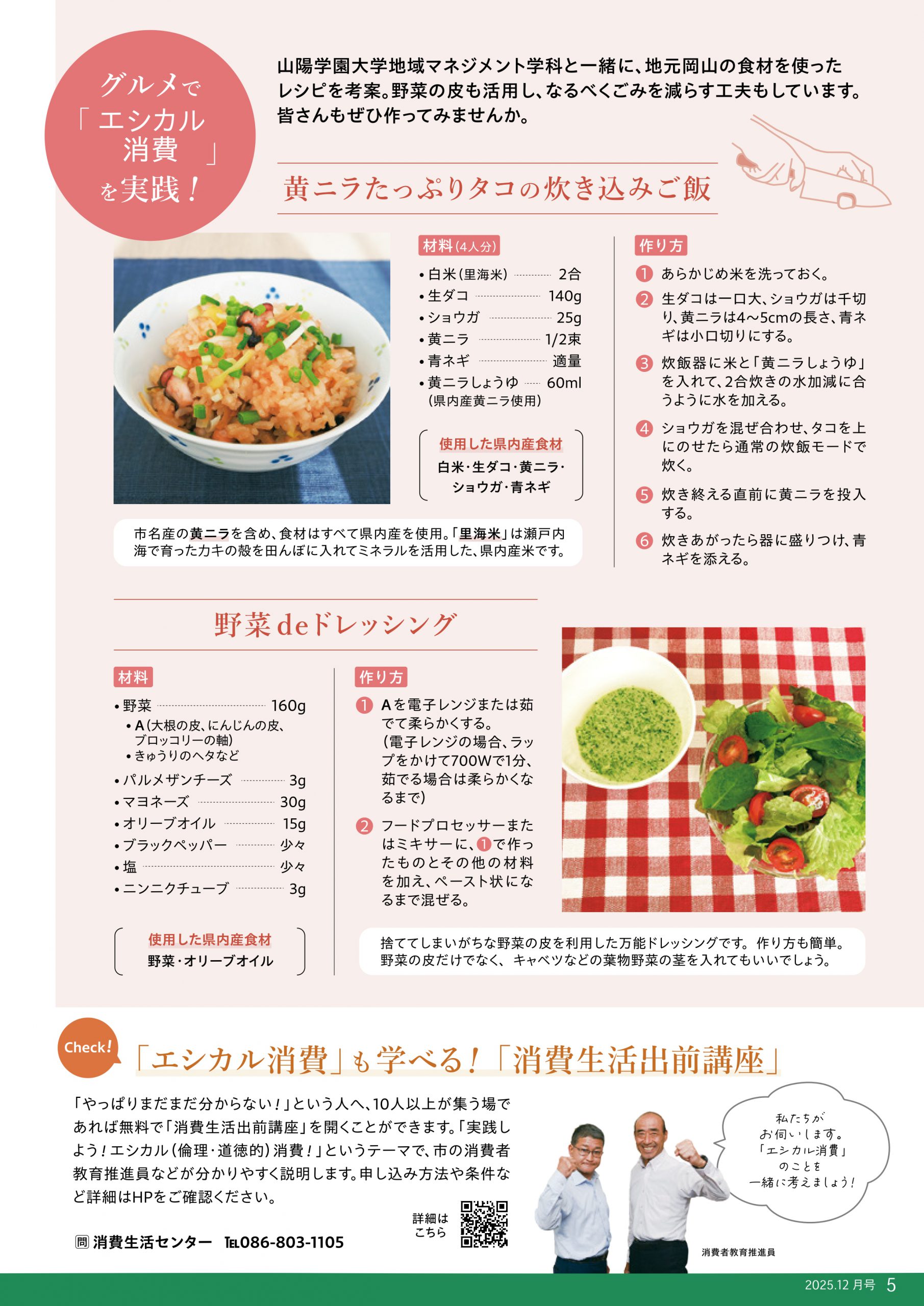 本学学生が考案したエシカルレシピが岡山市広報紙「市民のひろば12月号」に掲載されました 地域マネジメント学科(2025)
