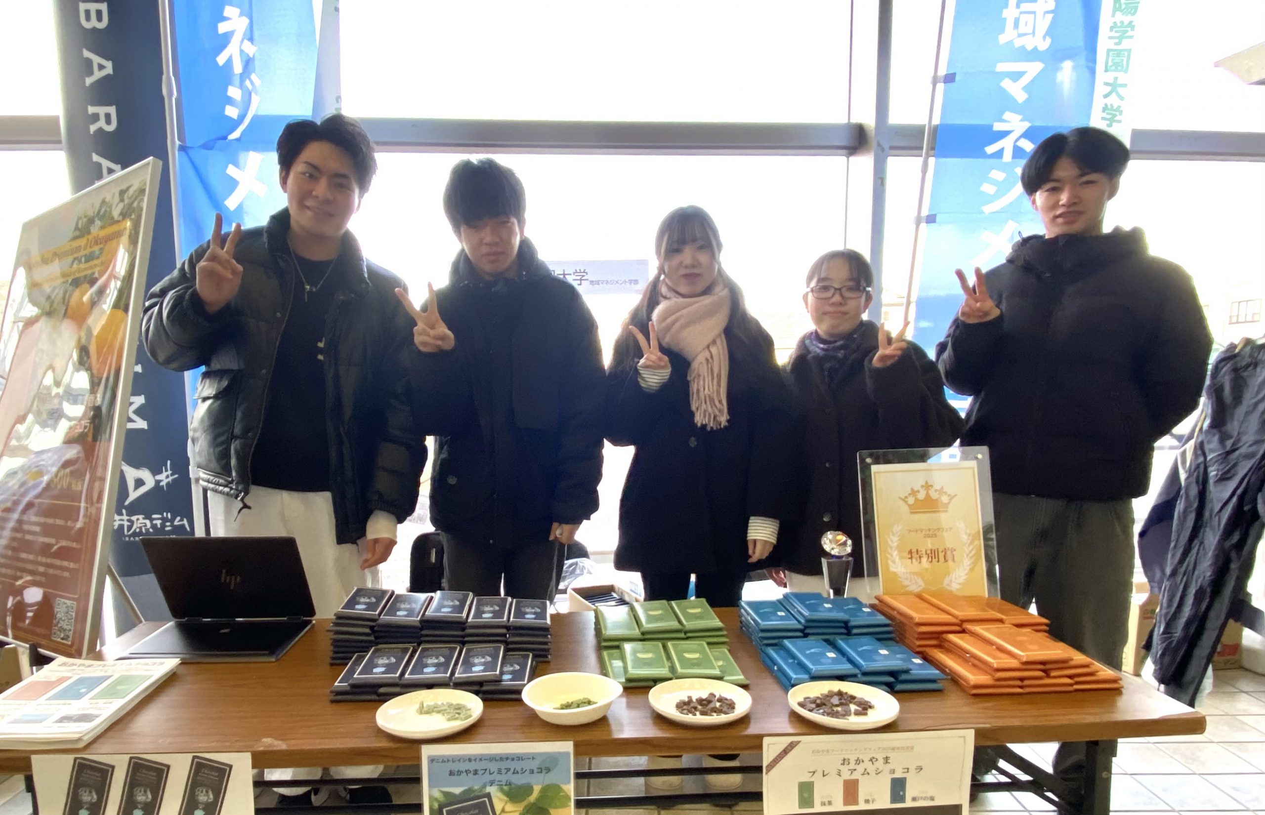 地域マネジメント学部のゼミ生と井原鉄道株式会社が共同でデニムショコラを開発しました。