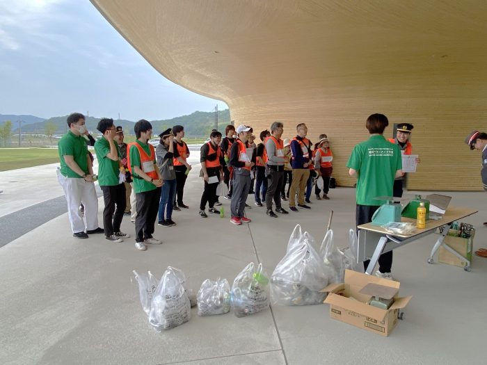 「井原鉄道沿線エコチャレンジ」は吉備真備駅で開催され、井原鉄道沿線の決められたエリア内でチームごとにごみを拾い、その回収量と種類によってポイントを競う競技です。当日は地元住民をはじめとして、沿線のボランティア駅長など約30人が参加しました。